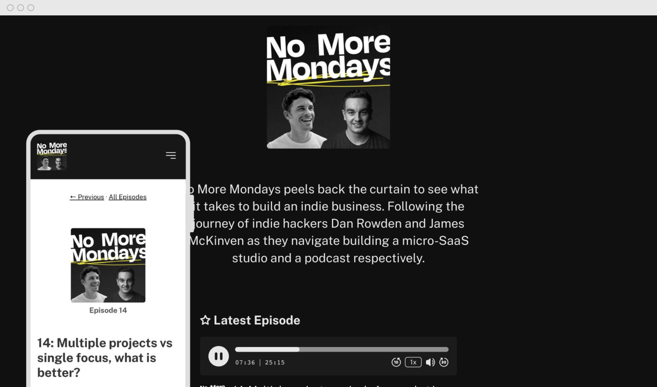 Just search for your show (or paste in your RSS feed), and we'll generate a website for you automatically.