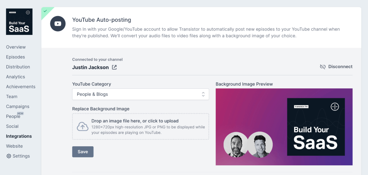 Auto-post your podcast to YouTube