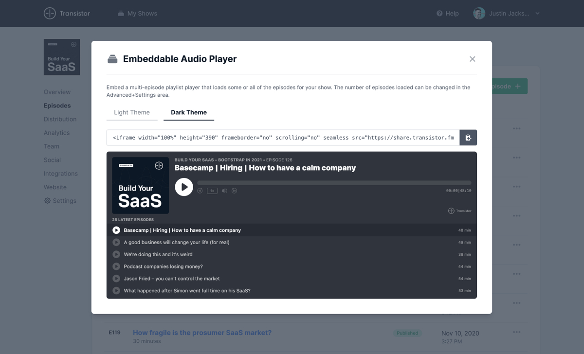 Upload your episodes, edit your custom podcast website, and distribute your podcast everywhere. All from within your Transistor.fm account.