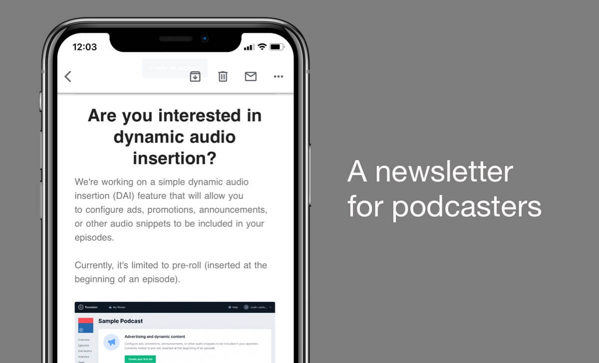Get our newsletter for podcasters. Get a sneak peek at upcoming features, tips for growing your audience, and features on new podcasts being added to Transistor.